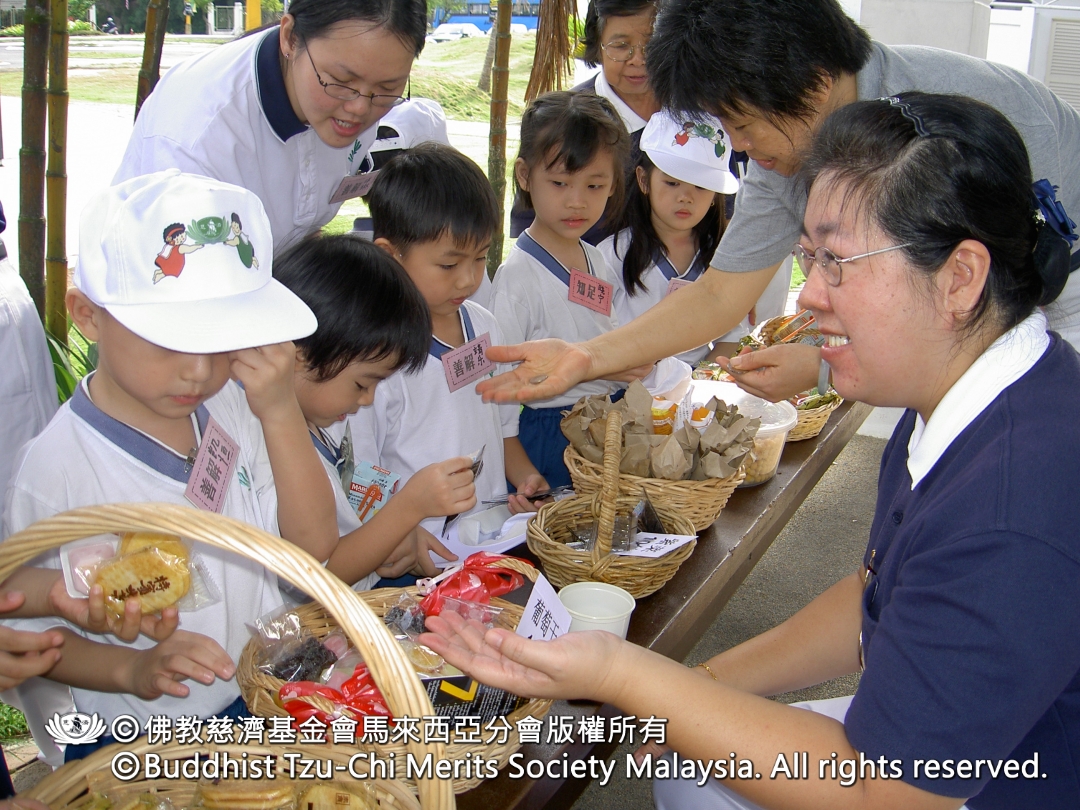 有些小朋友要求师姑多给一些,可是师姑说:做人不可贪心,有多少钱,就买多少的东西;有位小朋友还特地向妈妈多拿两个五十仙,想要给师公上人做善事呢!