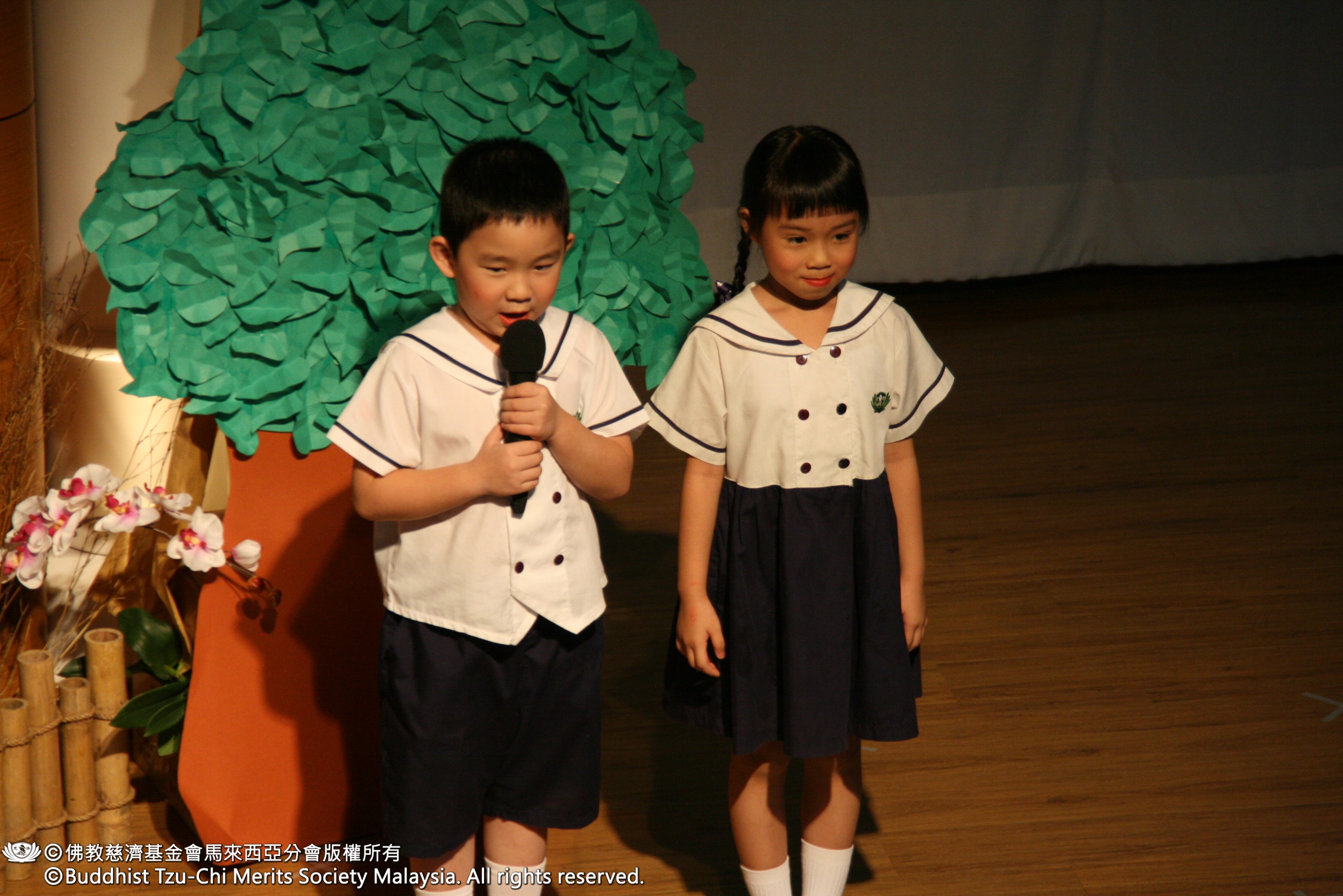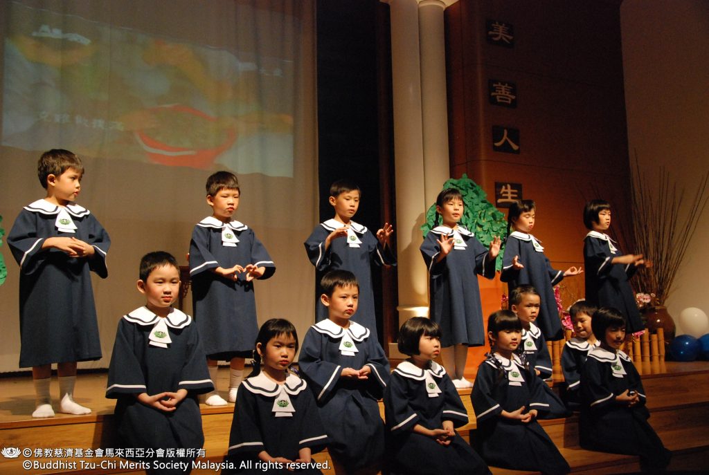 畢業生代表鐘詩瑤、黃婧之和王悉傑分別以華、巫、英三語致詞,道盡了這三年來在慈濟幼稚園的心聲與感恩。「感恩師公上人創辦慈濟,感恩院長與老師們的教導,感恩大愛媽媽們煮東西給我們吃,感恩陪我一起成長的小朋友……」