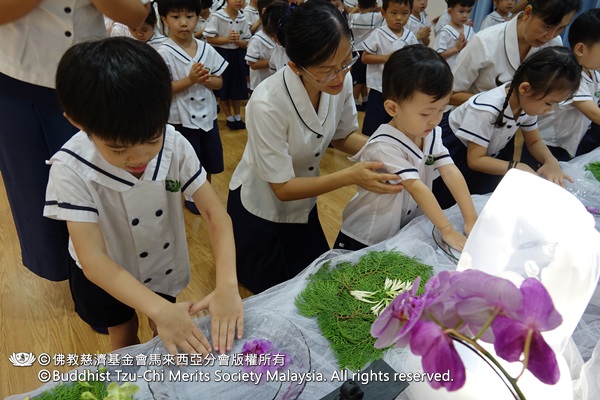 马来西亚新山慈济幼儿园举办浴佛典礼,孩子们在庄严肃穆的氛围中,学习感念佛恩、父母恩及众生恩。幼儿陈劭杰分享:“坏习惯不要做,要做好事,要感恩妈妈……因为她生我们出来很辛苦。”郑宇涵也说:“要跟佛陀学习做好事,不要打架,要做一个乖乖的孩子。”