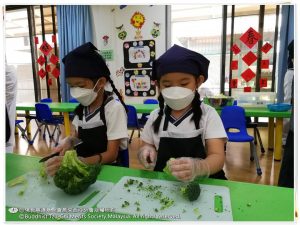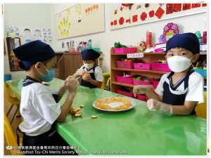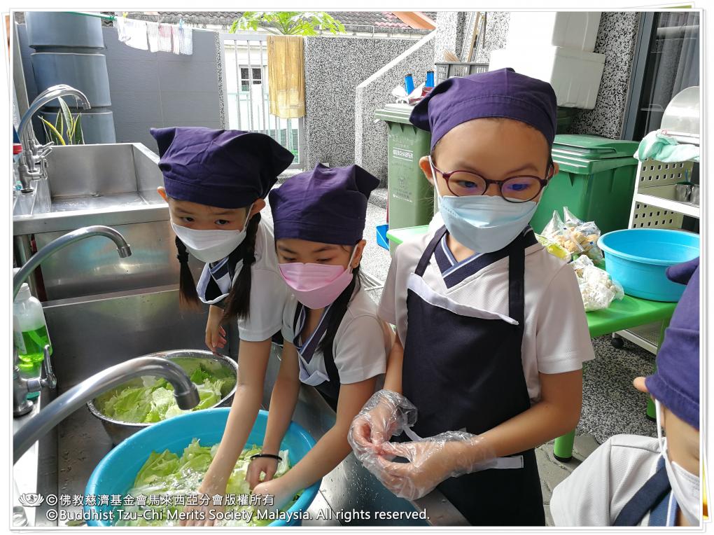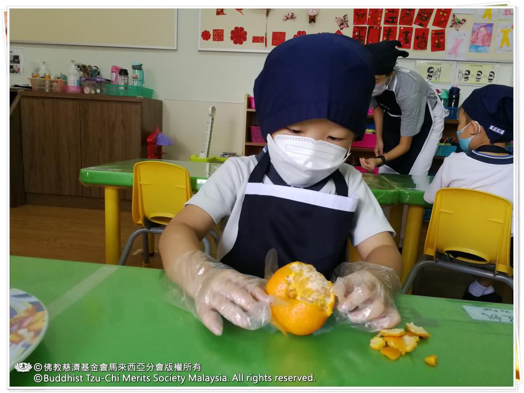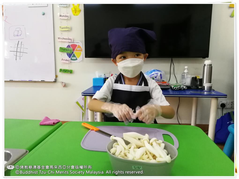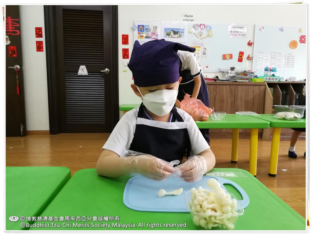 2023年1月18日,随着兔年的脚步临近,马来西亚新山慈济幼儿园的孩子们在老师和大爱妈妈的带领下,亲手准备象征吉祥如意的“五福临门团圆饭“。从四岁到六岁不等的小朋友积极参与其中,有的认真洗菜,有的专注切配,场面热闹而有序。当被问及正在准备什么食材时,五岁的陈文皓兴奋地列举着金针菇、白玉菇和鲍鱼菇,而四岁的吴歆宥则自豪地分享她将橘子摆成花形的过程。孩子们在动手协作中不仅学会了合作,也感受到传统节日的仪式感。