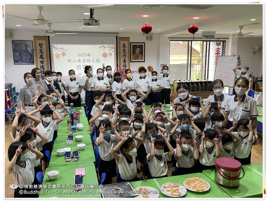 2023年1月18日,马来西亚新山慈济幼儿园洋溢着浓浓的节日气氛。全体老师、师姑、孩子们以及大爱妈妈欢聚一堂,共同迎接农历新年的到来,开展了一场充满温情与教育意义的“五福临门团圆饭”活动。