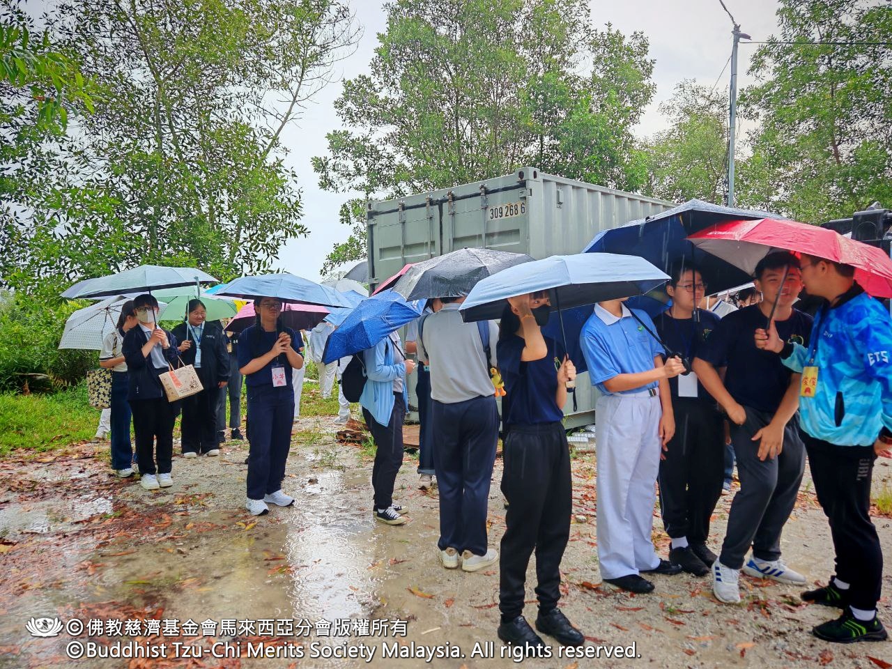 活動當天清晨,儘管天降大雨,青年志工們仍準時於教育中心集合,身穿整齊團服,前往峇都加灣慈濟園區。在園區中,眾人虔誠念誦祈願文,感恩大地滋養萬物,並發願以行動愛護土地、與萬物共生息。隨後,活動移至高淵慈濟安心班進行圓緣分享。