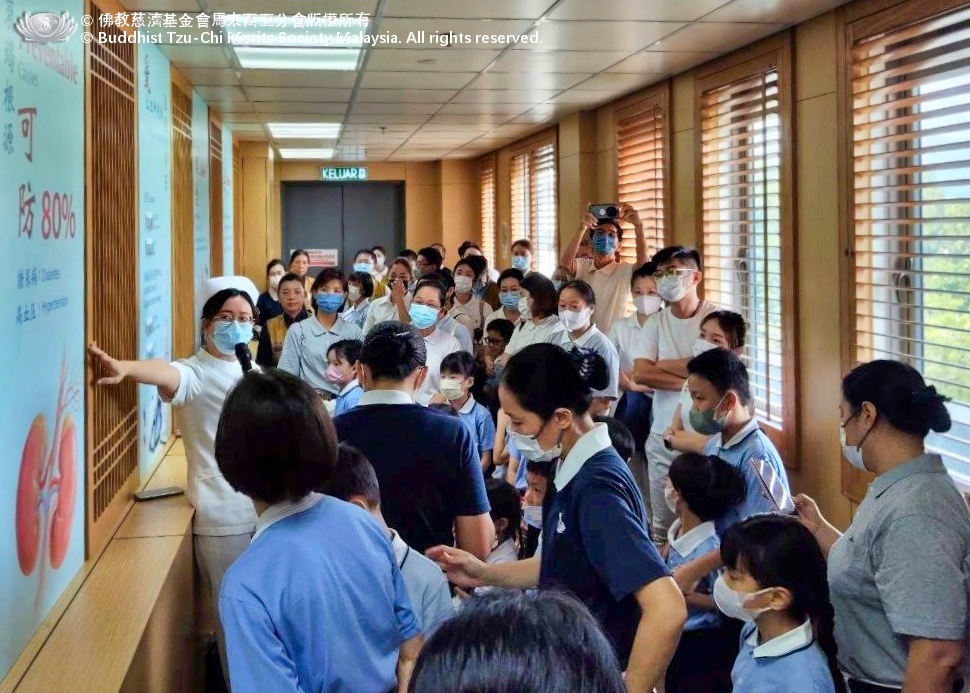8月30日,一群來自北海慈濟校友人文班的學生與父母,還有師資團隊到洗腎中心來參訪。在進行衛教期間,學生們都積極回應,父母們也熱心地提問。