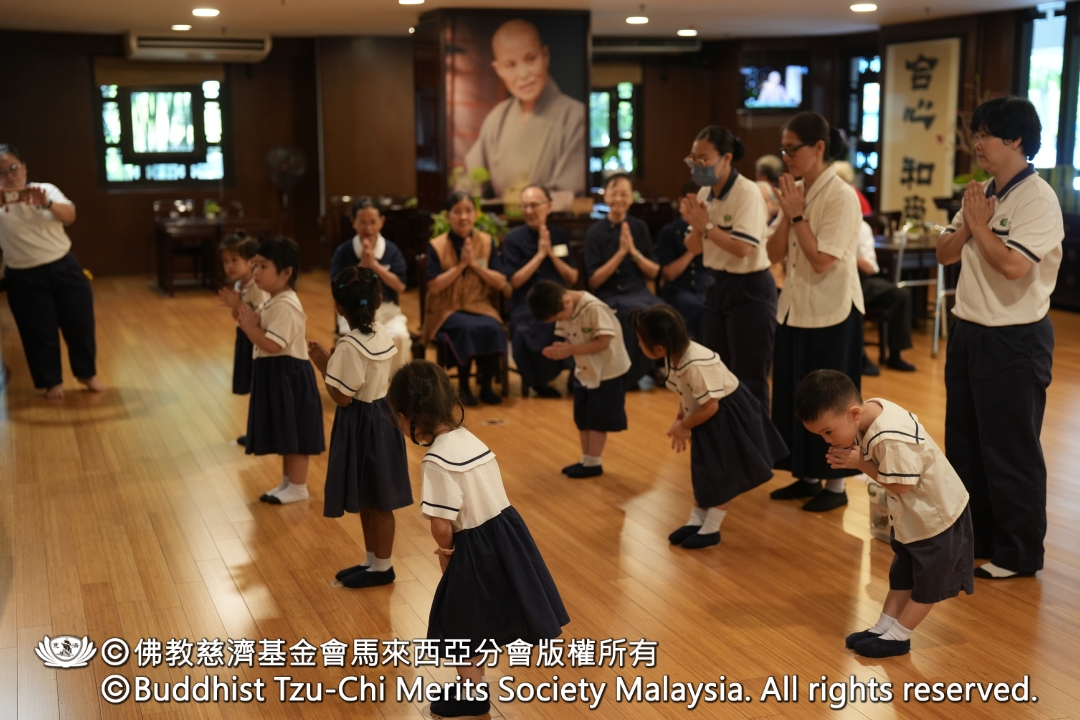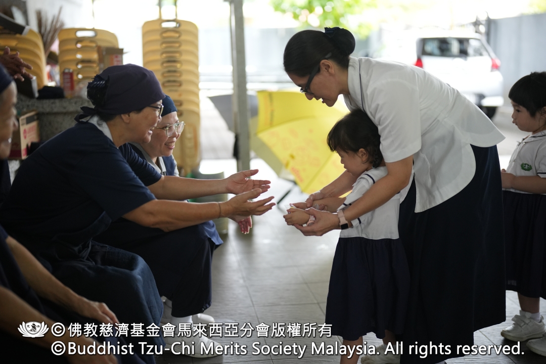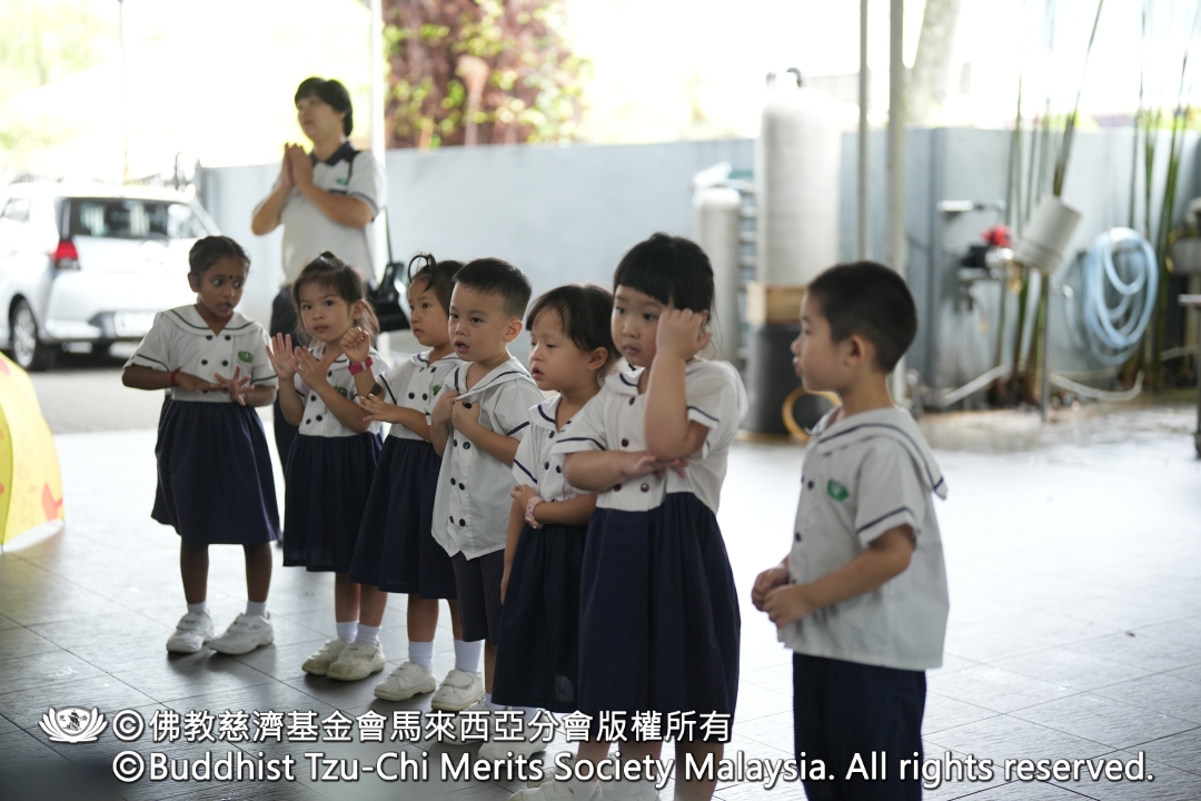 2025年9月3日,在充满爱国氛围的8月至9月期间,槟城慈济幼儿园4岁信心班的7位小朋友,在4位教职员的带领下,展开了一场特别的静思堂送爱行动。这场以“感念四重恩”为主题的活动,让孩子们用纯真的心,向默默付出的志工们表达感恩。