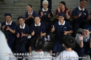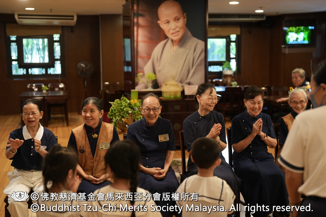 随后,孩子们来到知客室,向7位常驻志工送上爱的祝福。这些日夜守护静思堂的志工,接收到孩子们最纯粹的感谢,脸上绽放出欣慰的笑容。简单的互动中,传递着深厚的温情。