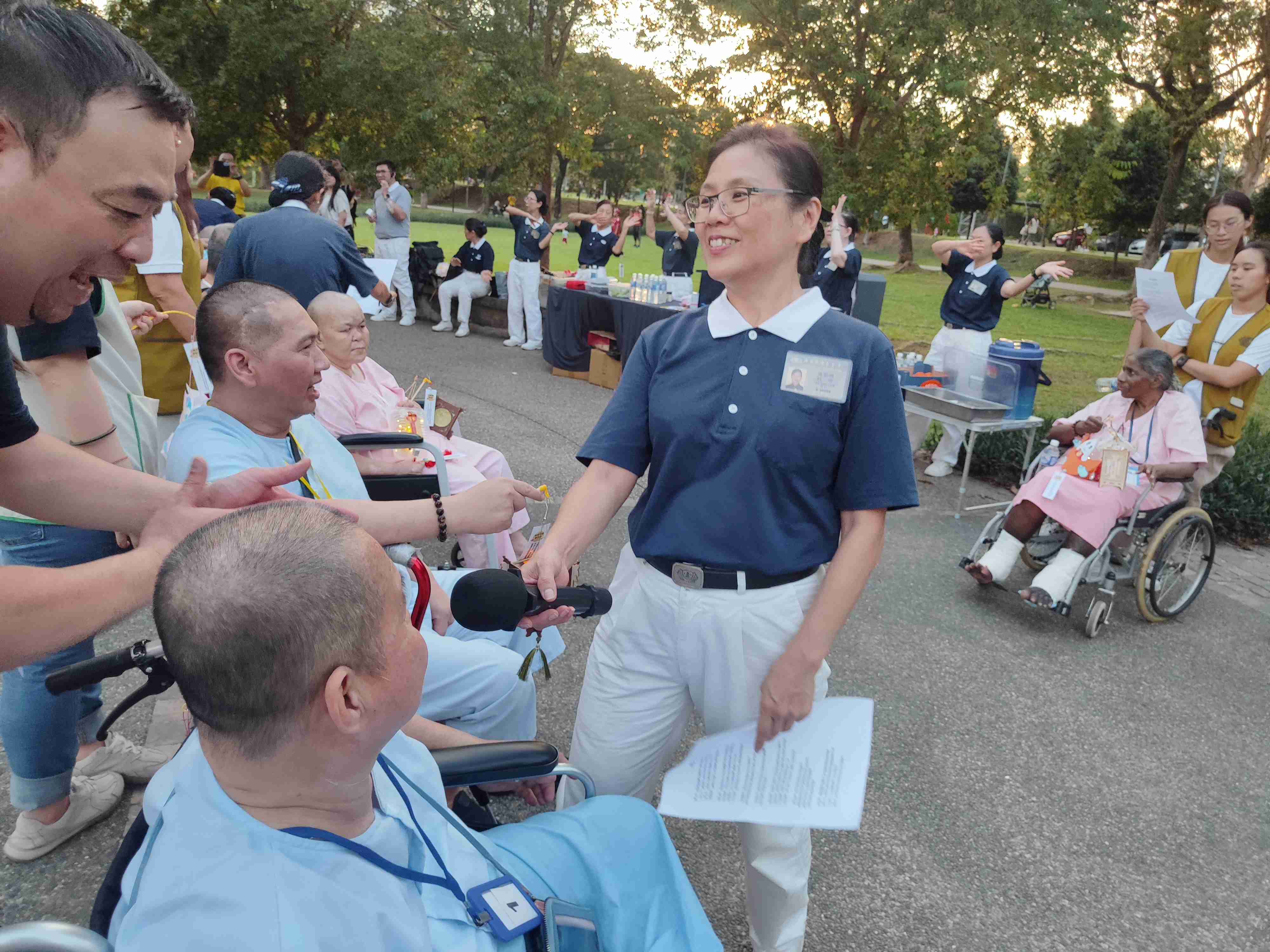 這個拿燈籠也是一個傳承 因為現在我們發現到很多都]是看手機看平板 所以我覺得我們還可以保持這個點燈籠的這個儀式 這個環節來慶祝中秋 是一個非常有意義的事情 再加上我們帶長期在院裡面的院友一起出來 跟他們去走其實是非常有意義的 因為他們很少可以在外面走動