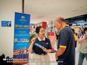 活动首日,志工们满怀热忱地向民众分享“希望教育”。即使怀抱幼儿的母亲,亦不忘驻足付出爱心,展现善念无处不在。陈丽华老师更成为宣导主力,亲切的解说收获了众多回响。同日,志工亦把握因缘,在Cmart等地灵活运用手机向民众介绍,让善的传播不受形式限制。