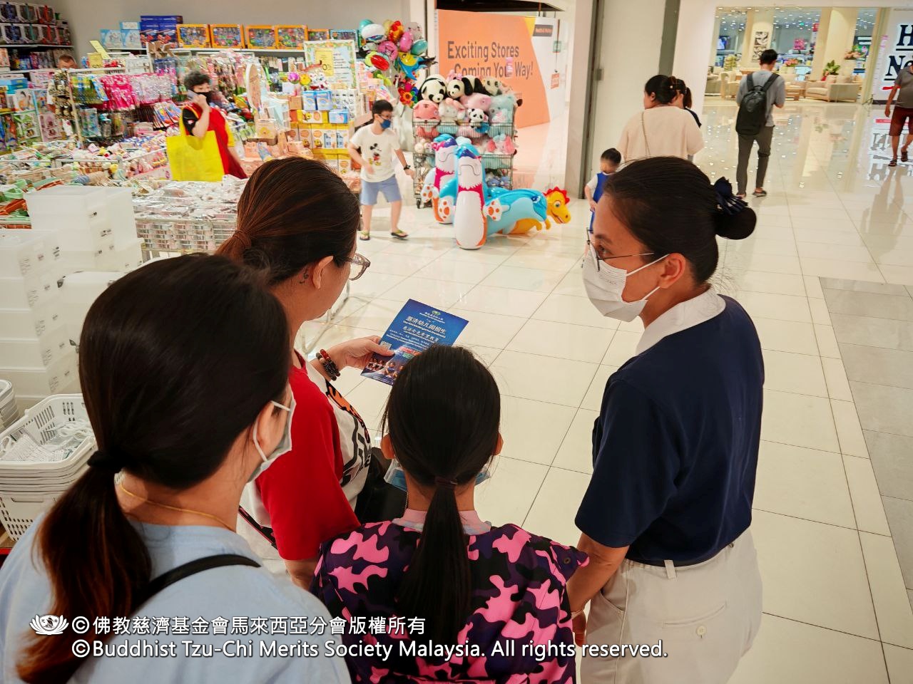 活动首日,志工们满怀热忱地向民众分享“希望教育”。即使怀抱幼儿的母亲,亦不忘驻足付出爱心,展现善念无处不在。陈丽华老师更成为宣导主力,亲切的解说收获了众多回响。同日,志工亦把握因缘,在Cmart等地灵活运用手机向民众介绍,让善的传播不受形式限制。
