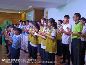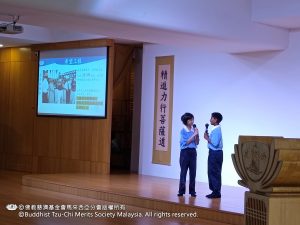 联谊会随后由慈济槟城安心班中学组学生上台分享他们在Grand STEM Challenge竞赛中全员获奖的喜悦及心得;小学组学生则以对谈方式,呈现了慈济「希望教育」的由来与深意。