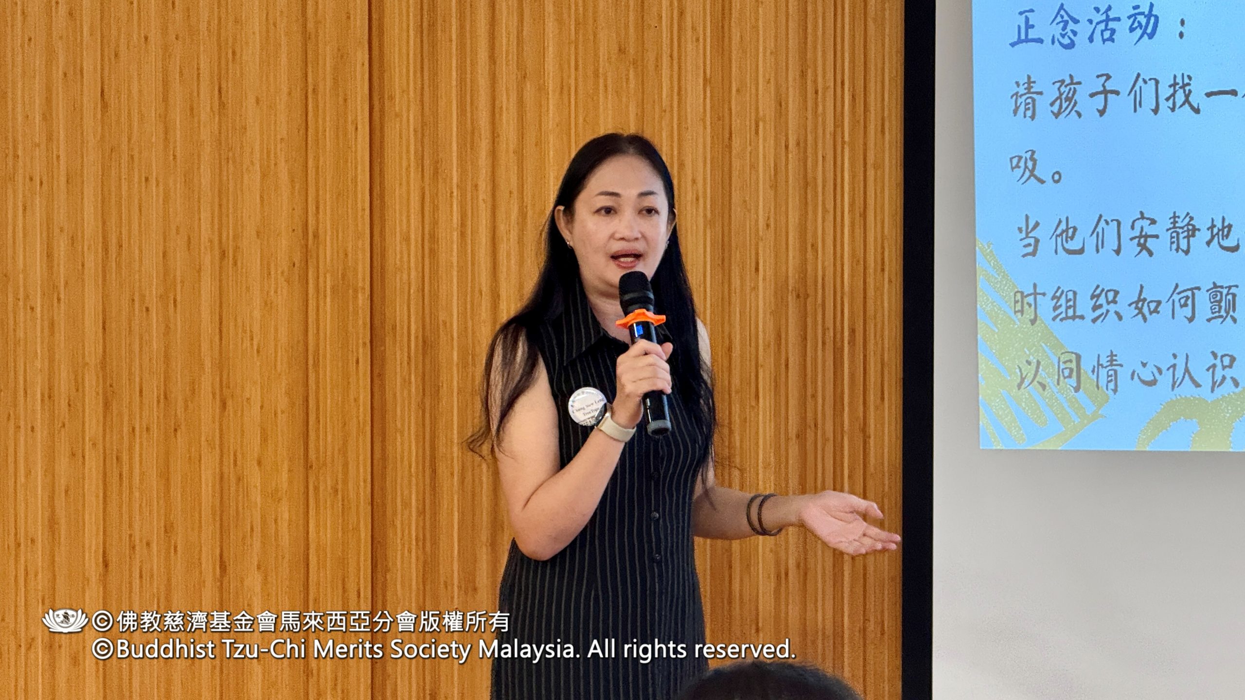 联谊会上,慈济槟城幼儿园张丽婷园长首先分享了2027年国家教育新课纲的重点方向。随后,七位“大爱引航之友”的教育伙伴分享了近一年来在各园所落实慈济人文教案的点滴经验: