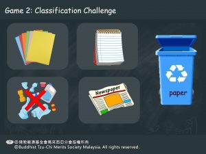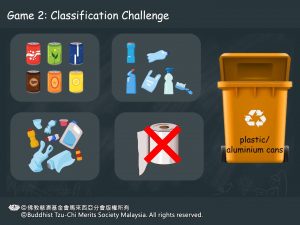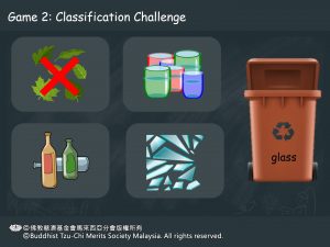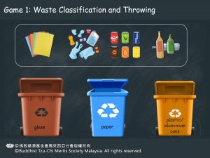 垃圾分类教学也充满互动乐趣。孩子们通过智能白板游戏,学习区分纸张、玻璃、塑料与铝罐。曾有孩子疑惑:“可回收物为什么不能放在一起回收?”老师便引导他们理解“处理过程不同”。在马来西亚三色回收桶制度下,孩子们也学会了辨认颜色与分类对应。