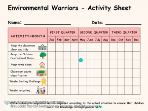 D’monte特别设计了假期学习单,让孩子记录在校与在家的环保行动:是否擦了自己的桌子?是否清洗餐具?是否分类回收?学校将白色纸与彩色纸分开回收的做法,也延伸到家庭认知中。