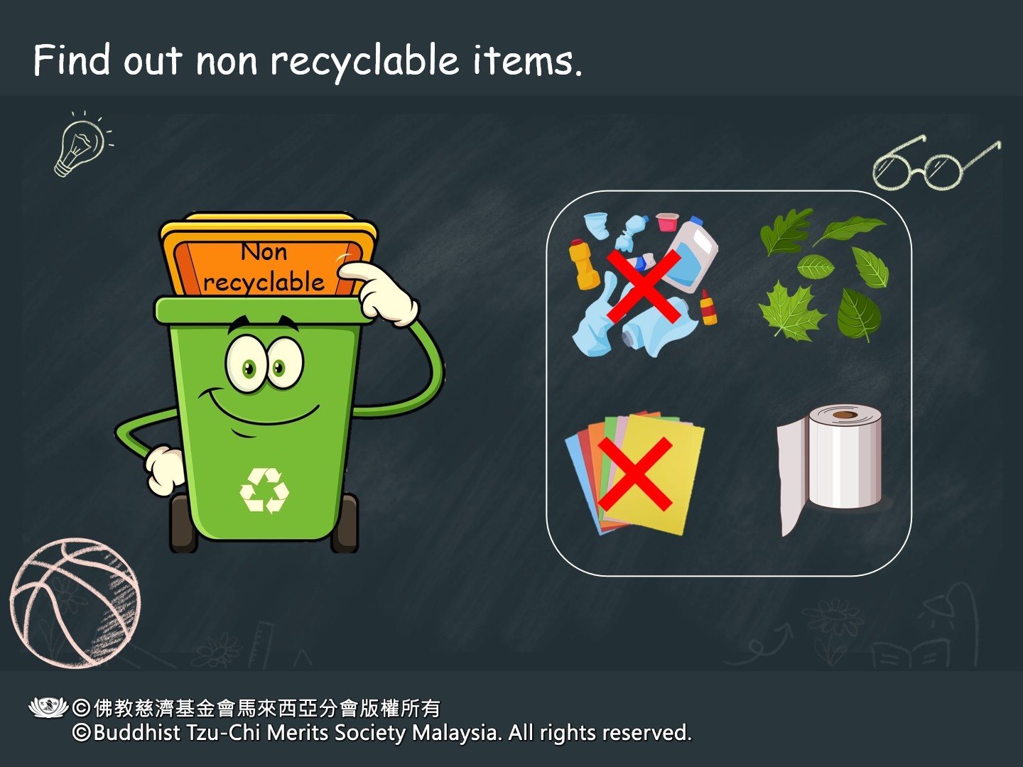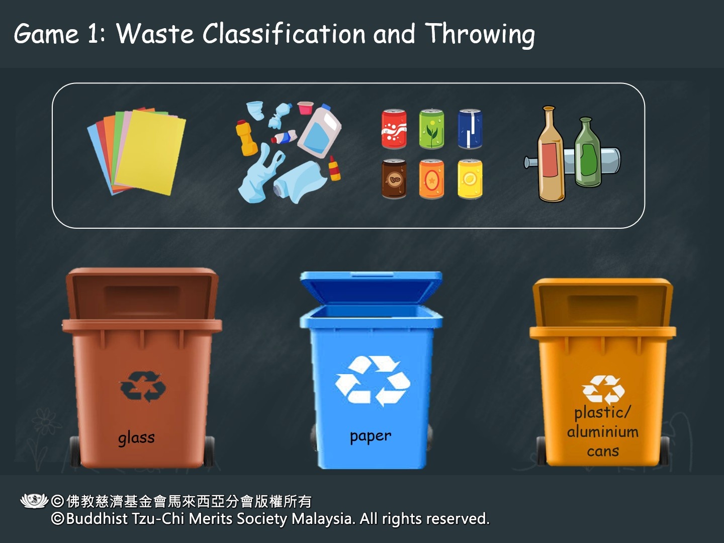 垃圾分类教学也充满互动乐趣。孩子们通过智能白板游戏,学习区分纸张、玻璃、塑料与铝罐。曾有孩子疑惑:“可回收物为什么不能放在一起回收?”老师便引导他们理解“处理过程不同”。在马来西亚三色回收桶制度下,孩子们也学会了辨认颜色与分类对应。
