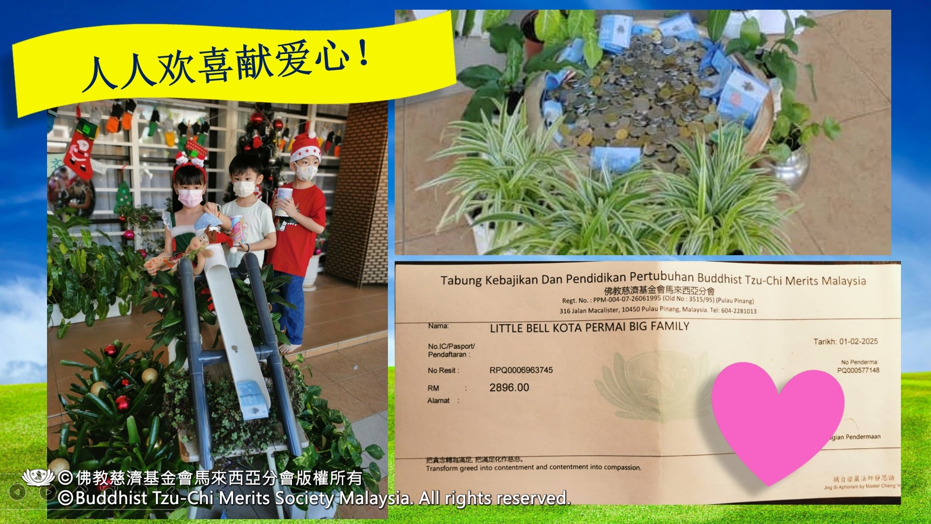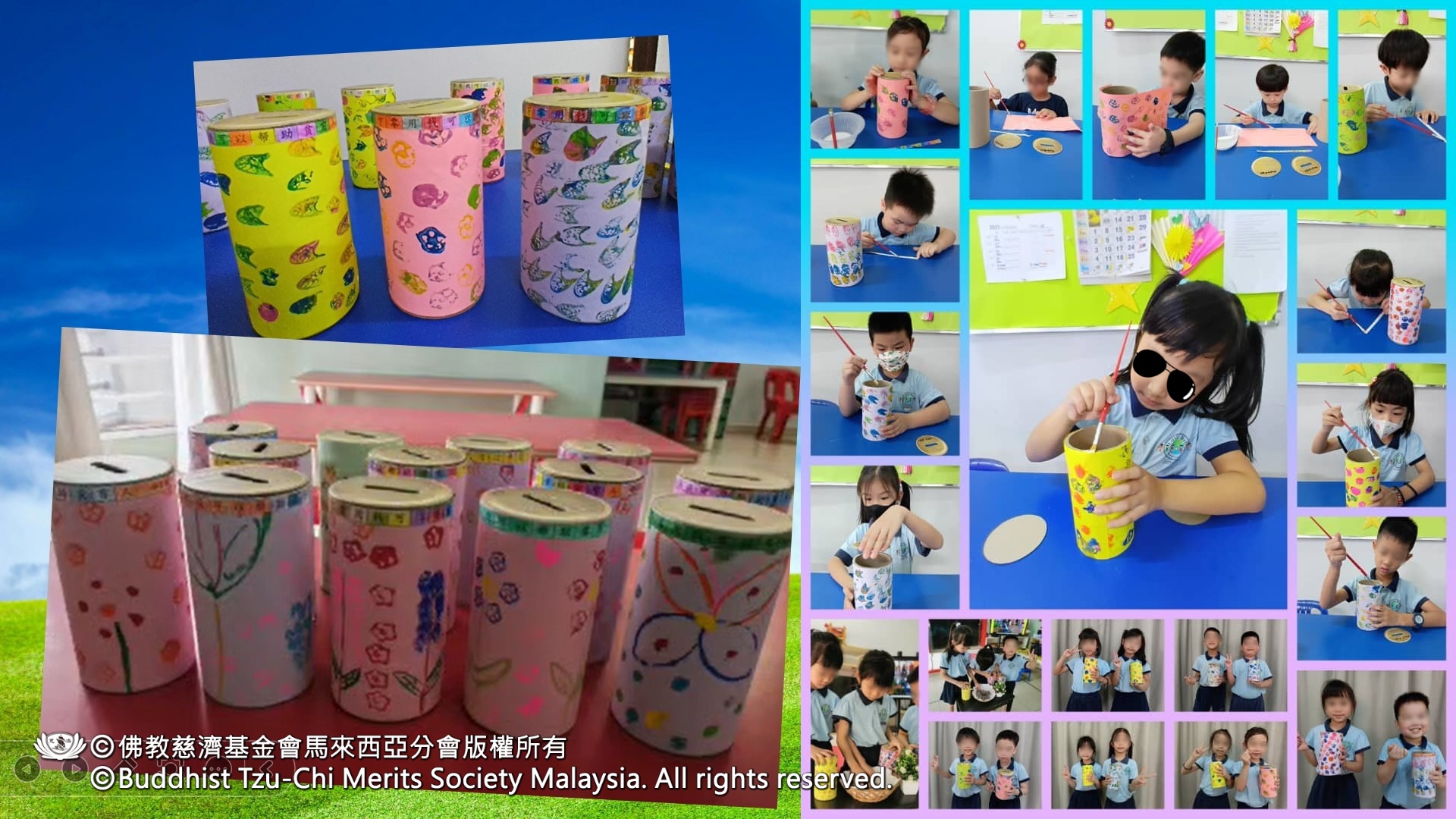 孩子們親手製作儲蓄筒,學習儲蓄不是為了自己,更是為了幫助他人。每年十二月聖誕節,園所將這一天定為「分享日」,孩子們將一年來存入的零錢匯集起來,化為幫助需要者的愛心捐款。「每個人小小的愛心都可以奉獻出來,」邱園長說道,這項年度計劃讓人歡喜獻愛心。