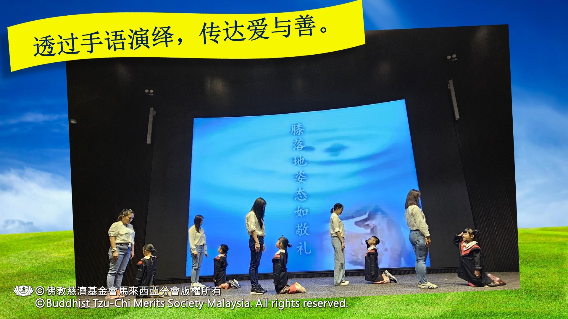 這份成果,在2025年11月1日於檳城慈濟教育中心舉行的第一屆「大愛引航之友」聯誼會上,得到了溫暖的見證。當天,來自檳城與霹靂兩地的33所幼兒園及安親班代表齊聚一堂。這些教育夥伴自2024年11月完成為期六天的人文教案培訓後,歷經長達一年的園所實踐,當天特別有七所機構分享如何將「靜思語」智慧結合自身特色,轉化為孩子生活中的具體行動。其中,邱園長便分享了如何將人文理念化為孩子手中的儲蓄筒、校園裡的環保行動,以及親子共融的手語表演。