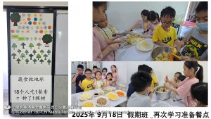 更大的突破发生在“动手做”的实践中。安亲班将简单的干拌蔬食面改为让孩子自己动手放蔬菜、搅拌;九月份更安排孩子们到慈济教育中心参与“蔬食爱地球”课程,亲自备餐、炒菜。