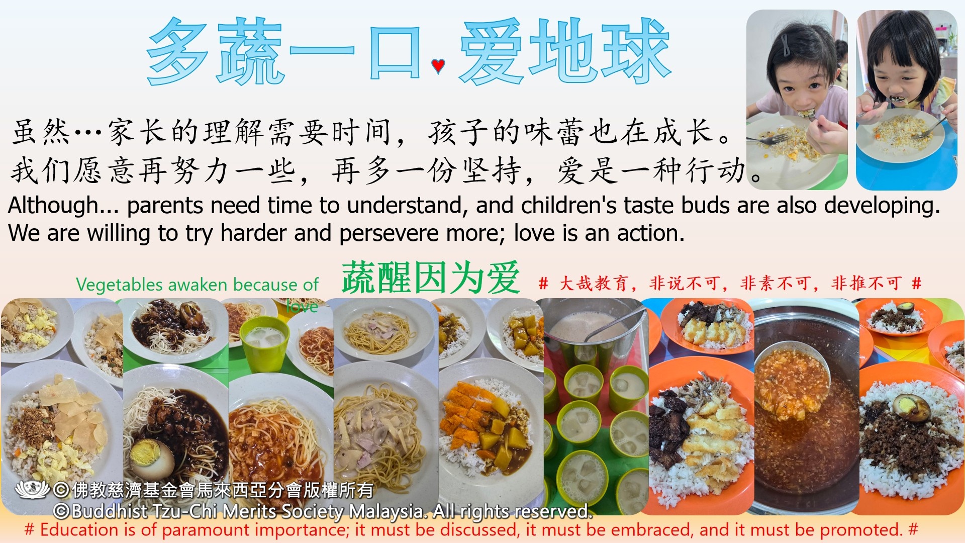 从每月两次到每周三次素食,从蛋奶素到全素,从孩子抗拒到主动下厨,林思洁与团队用创意与耐心,写下一段充满温度的教育实践。她感恩地说:“慈济就像我们的后盾,让我们不怕往前冲。我们希望教育这条路可以持续走下去。”