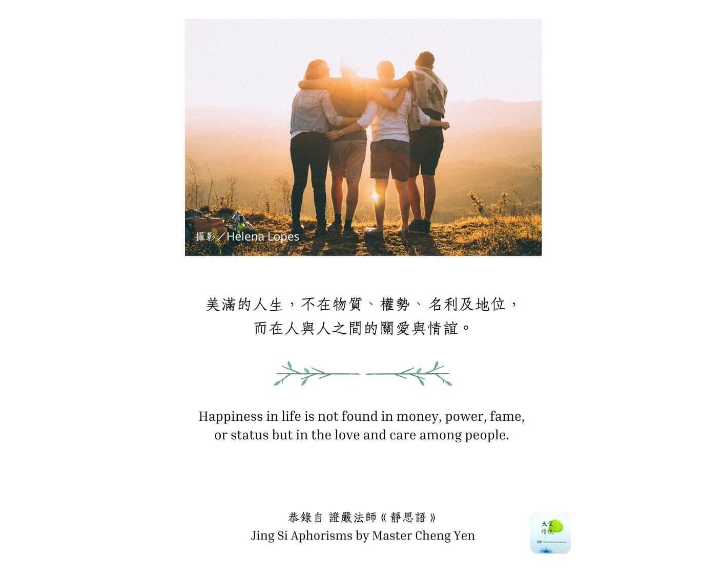 「美滿的人生,不在物質、權勢、名利及地位,而在人與人之間的關愛與情誼。」—— 證嚴法師《靜思語》 ✨