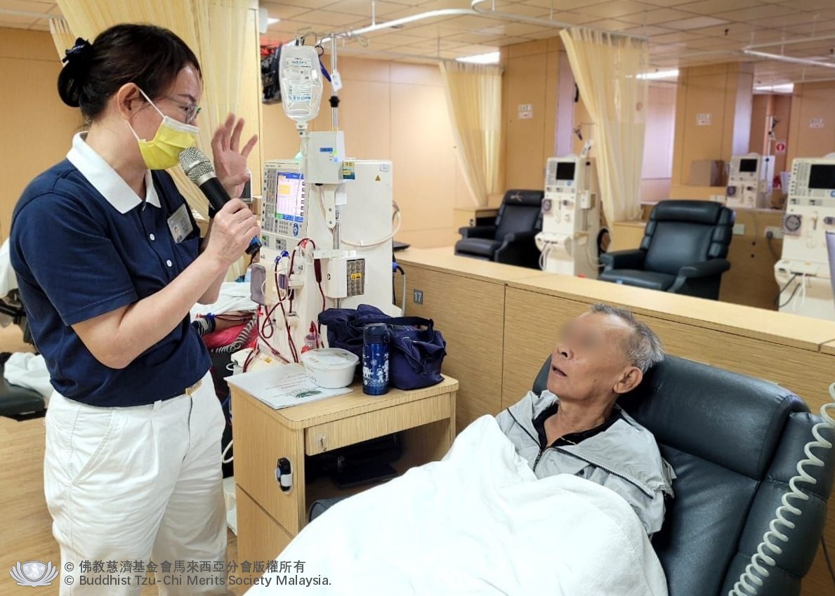 A morning in the dialysis room is no longer just about treatment—it has become a time for spiritual nourishment. Under the ‘108 Days of Reverent Practice’ movement, our team has dedicated a special time for ‘Wisdom at Dawn’. Patients now listen to Master Cheng Yen’s teachings during their sessions, followed by a warm sharing led by volunteers, where everyone is encouraged to speak from the heart.