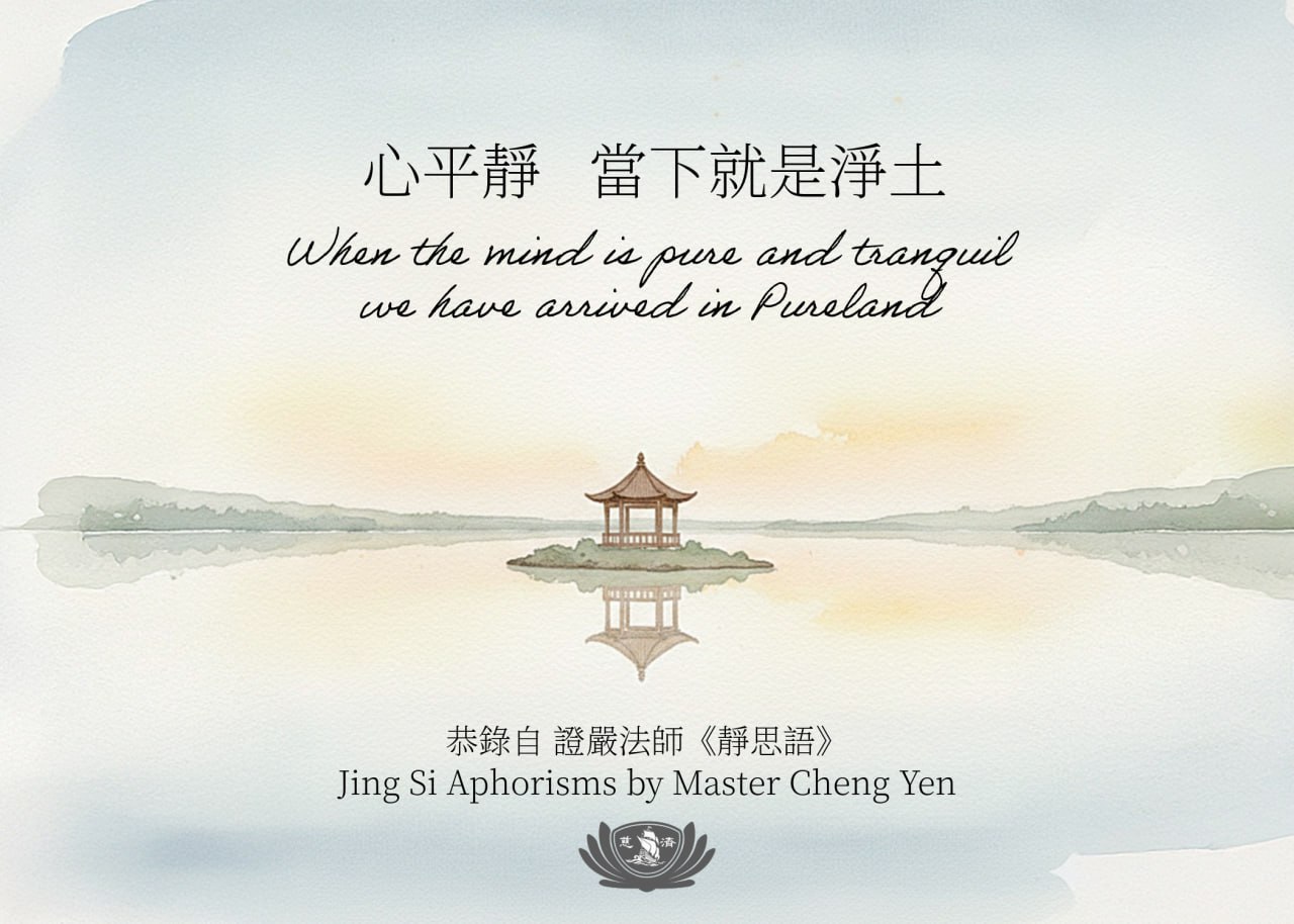 “When the mind is pure and tranquil, we have arrived in Pureland.” —— Jing Si Aphorisms by Master Cheng Yen.