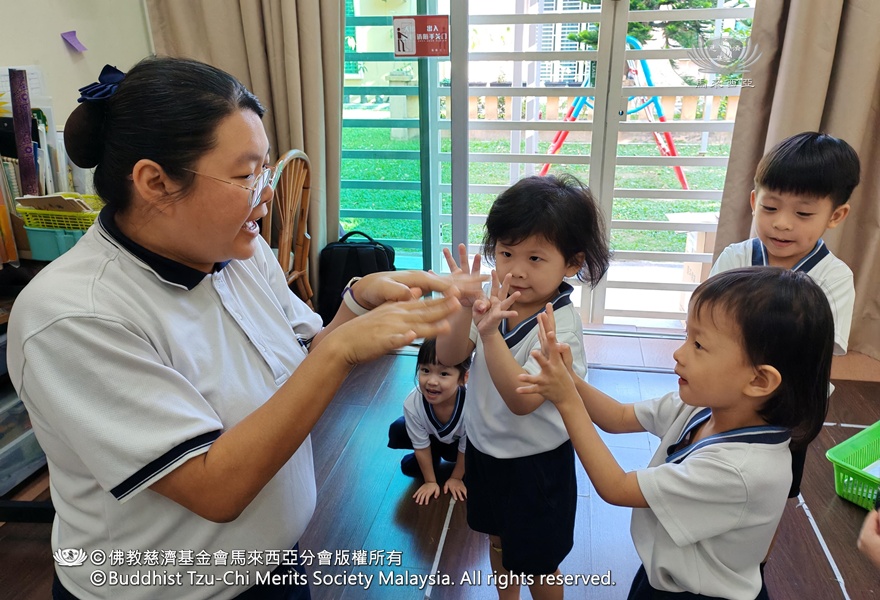开学第一天,老师们教新生们唱简单的手指摇:“三根手指头啊,三根手指头啊,变变变,变成小花猫。”孩子们觉得很新鲜好玩,都伸出小手,跟着老师念、跟着老师做动作,脸上满是开心的样子。