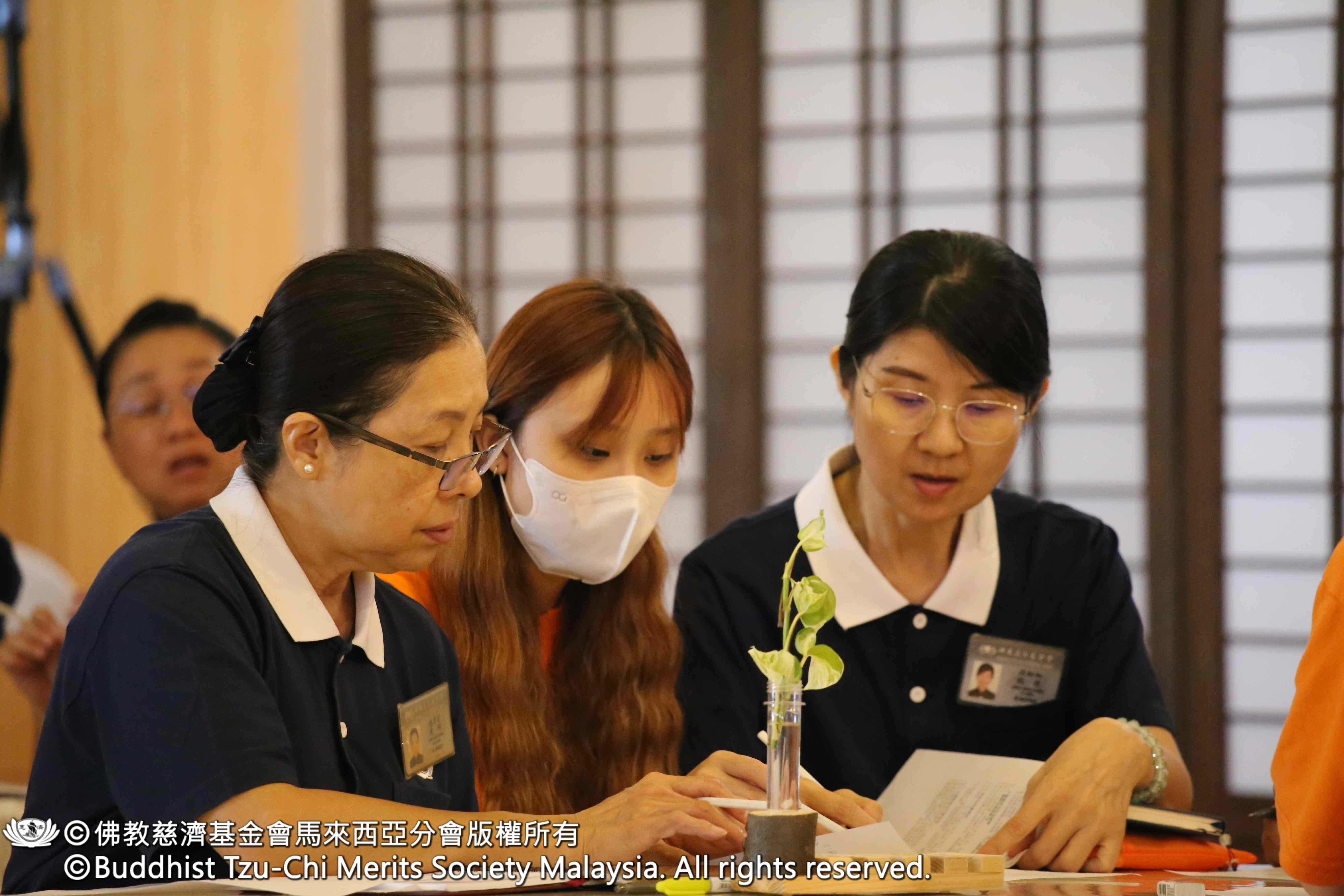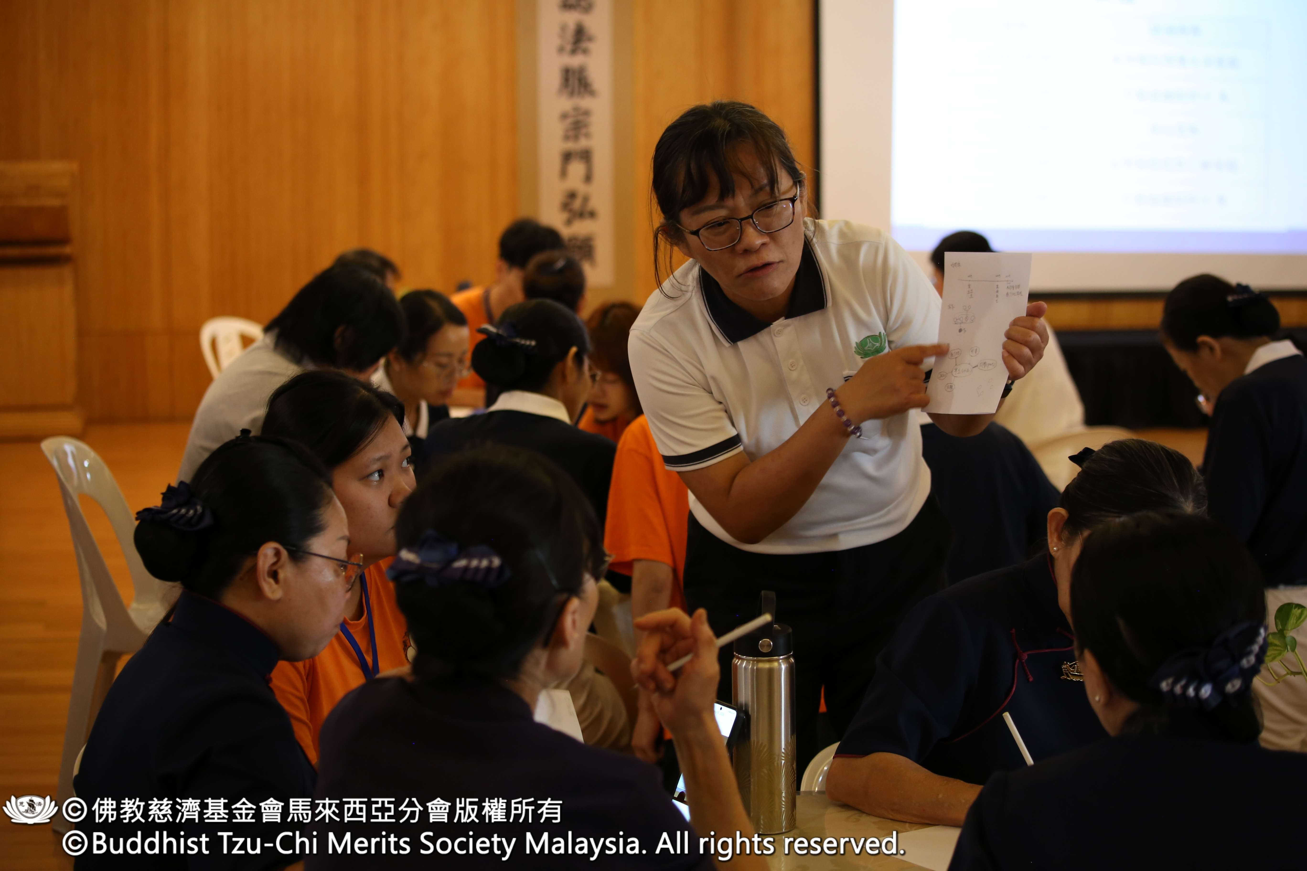 教育中心主任慈芊老师则向出席的志工们宣导「108天戒慎虔诚运动」,引导大家戒慎虔诚,以内修外行供养 上人的恩德。