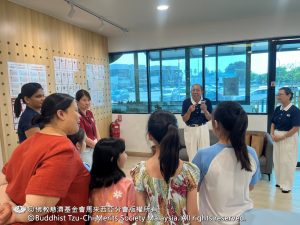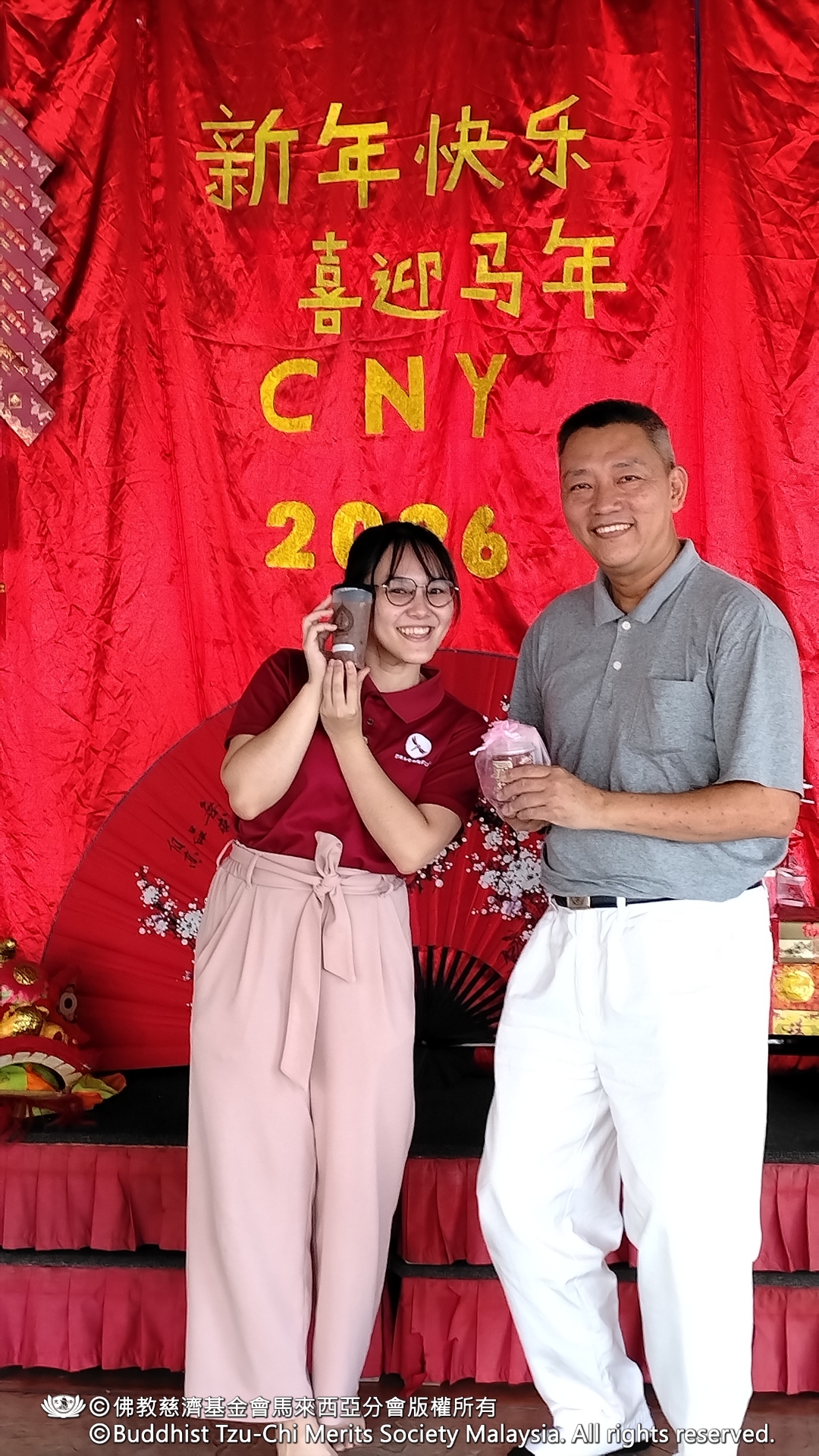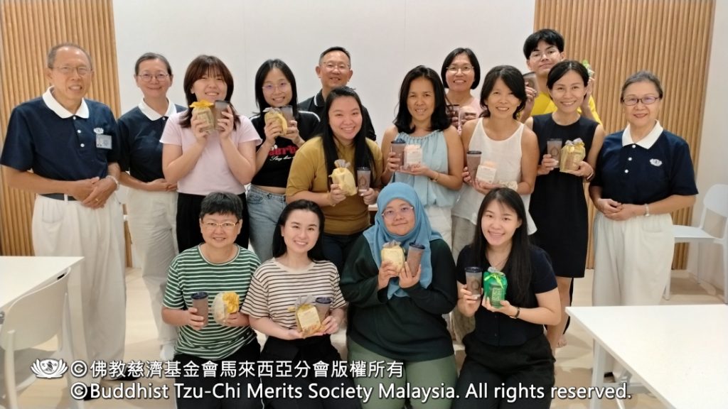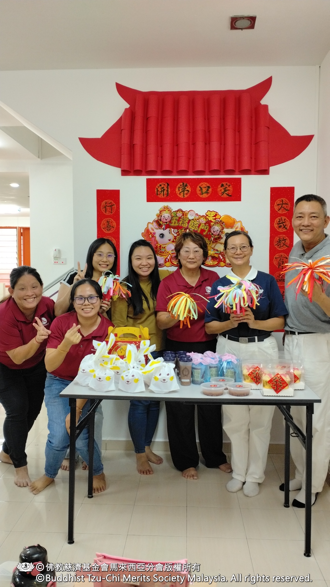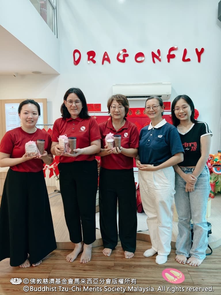 随后,志工与总部职员分组前往旗下九所幼儿园与安亲班继续送爱。在Kota Permai小状元安亲班,学生以百家米煮成的腊八粥及亲手制作的点心与志工结缘;Bukit Minyak红蜻蜓幼儿园也将师生平日投入的竹筒善款交予志工,把点滴爱心传递出去。