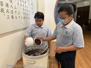 每逢腊八节,人们都会煮上一碗甜甜的腊八粥,迎接新年的脚步。幼儿园及安心班的师生们从家中带来各种谷物及坚果,将一份份心意汇聚在一起,熬煮成承载百家祝福的腊八粥,并送爱到各志业体与大家分享。这一碗 “百家粥” ,寓意汇聚众人的祝福,祈愿来年身体健康、平安喜乐。
