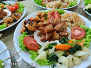 最后,全园师生,校友与志工围坐在一起共享团圆饭,迎接新年的到来。黄新财师兄也送上象征吉祥的柑橘,祝福孩子们新年快乐。