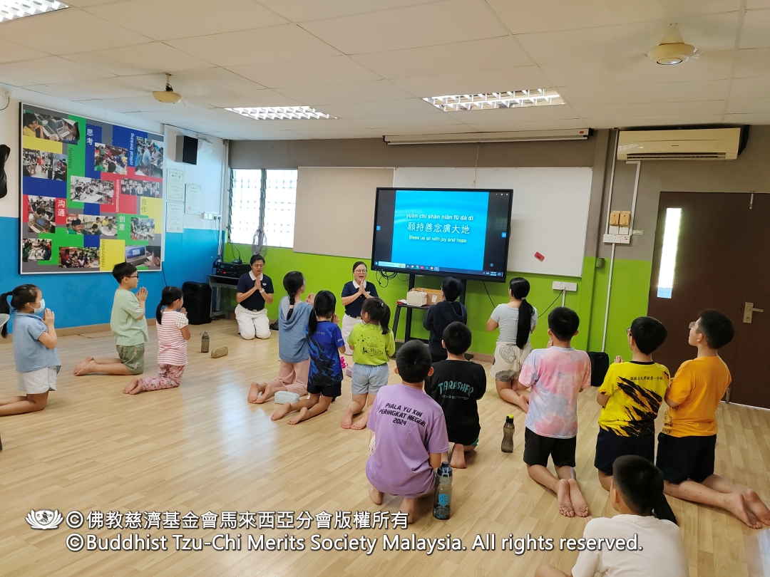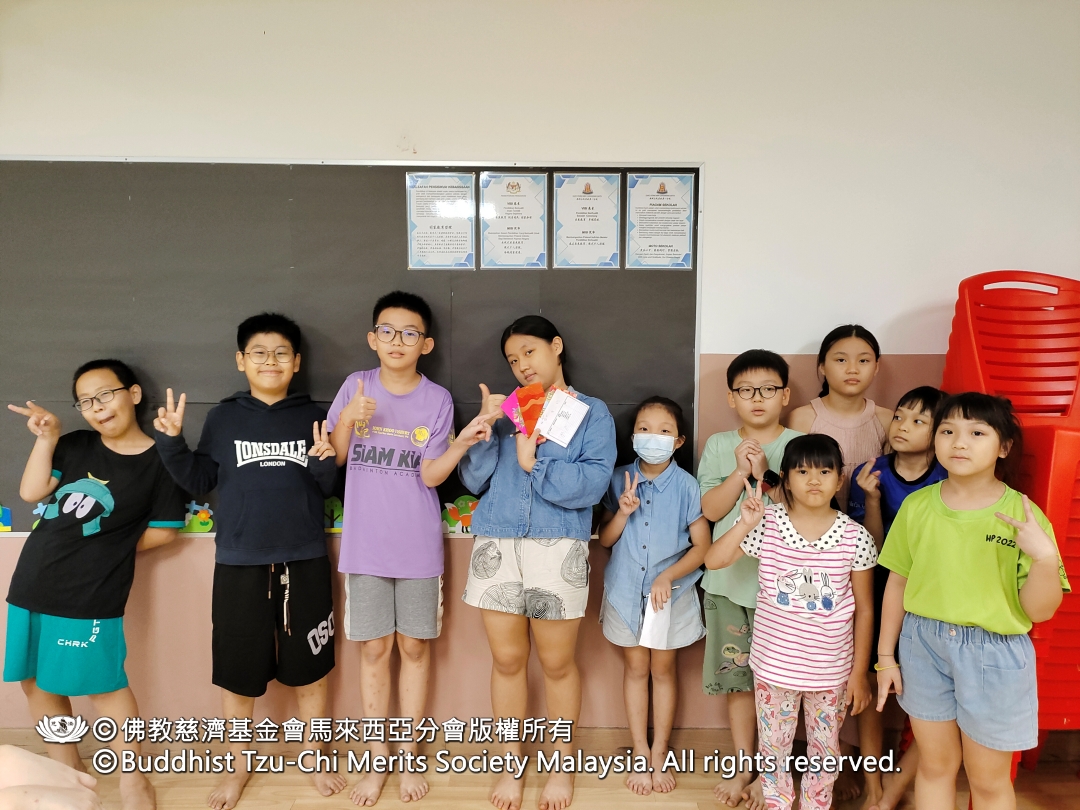 活动尾声,孩子们一起唸出静思语:“愿意付出爱心,就是最有福的人;人多力量大,福气就愈大”,并虔诚唱出爱与关怀,祝愿人心净化、社会祥和、天下无灾。