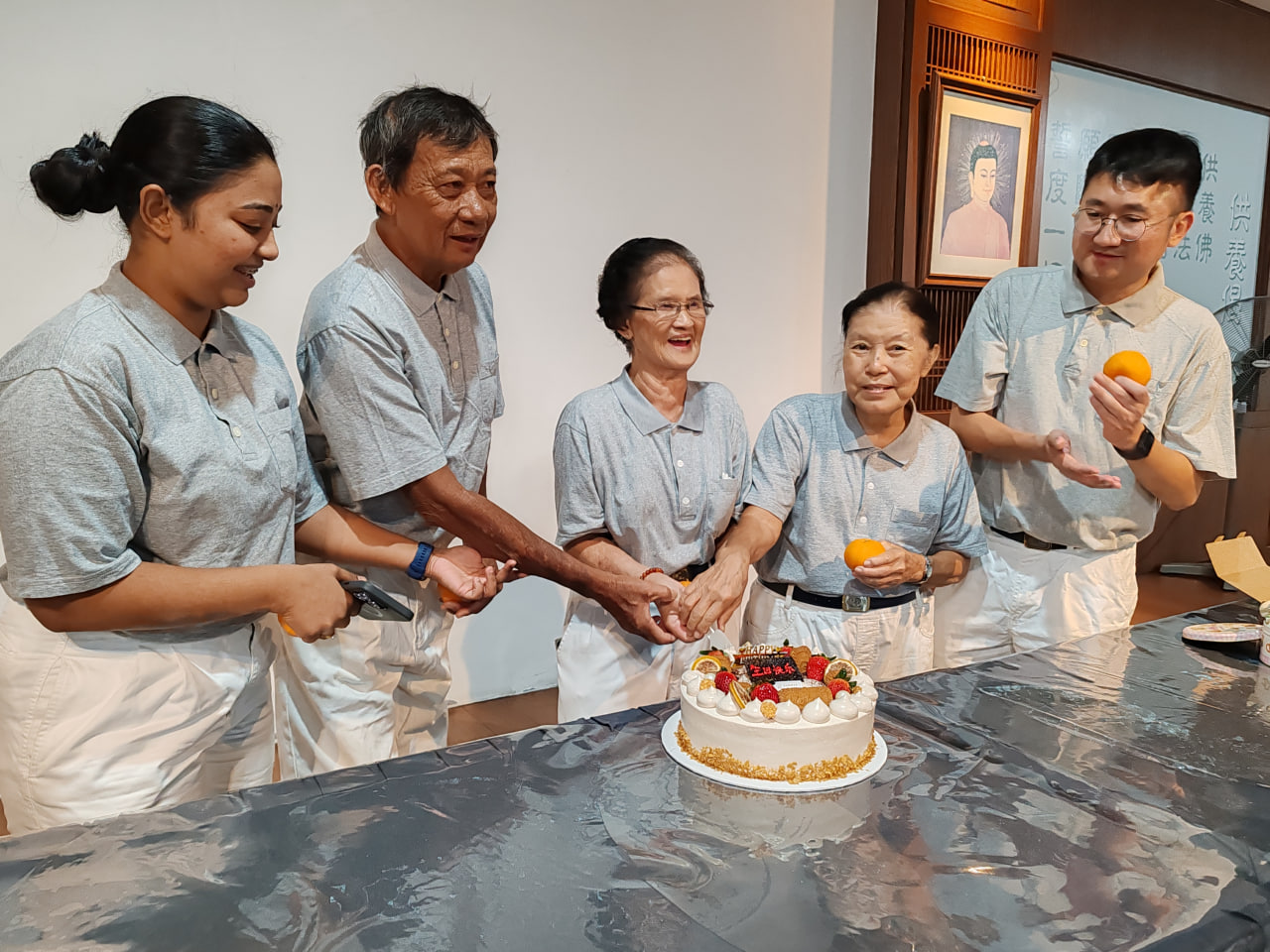 當晚的司儀佩蓉師姊歡喜迎接大家的到來,並邀請二月生日的組員們出列,大家一起為他們慶生。撈生環節,合心團隊和組長們帶領大家一同撈生。每一撈都帶著滿滿的新春祝福。首次以新和氣區身份見面的志工們,皆是歡喜一同用餐、結識新朋友。用餐後,大家根據各自的組別聚集在靜思堂小齋堂。