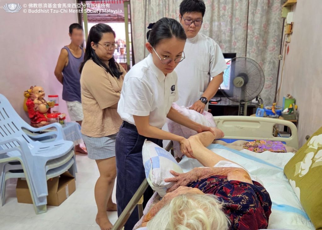 慈濟持續為居住在大山腳的感恩護林女士(化名)提供醫療居家關懷。高齡 88 歲的林女士在截肢手術後健康大受影響,需要長期的傷口護理與復健。她的女兒是主要照顧者,但家庭資源十分有限。