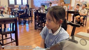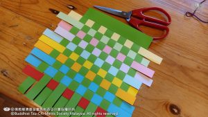 莲娥师姐用心的提示与示范编织草席要注意的事项,孩子们很认真的将每一条纸条都推紧、对齐。九岁的李承羽用心聆听、随即调整,将草席编的整整齐齐。进步就在一念之间。