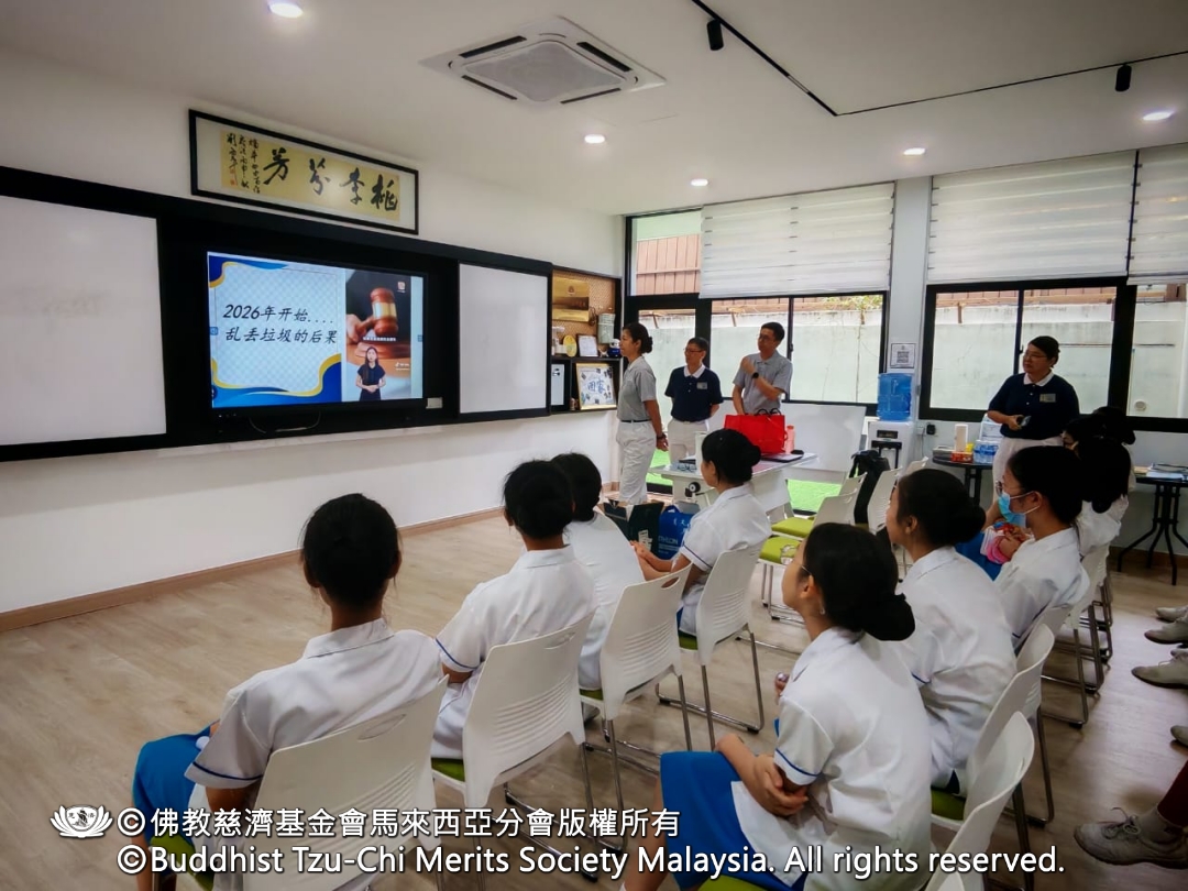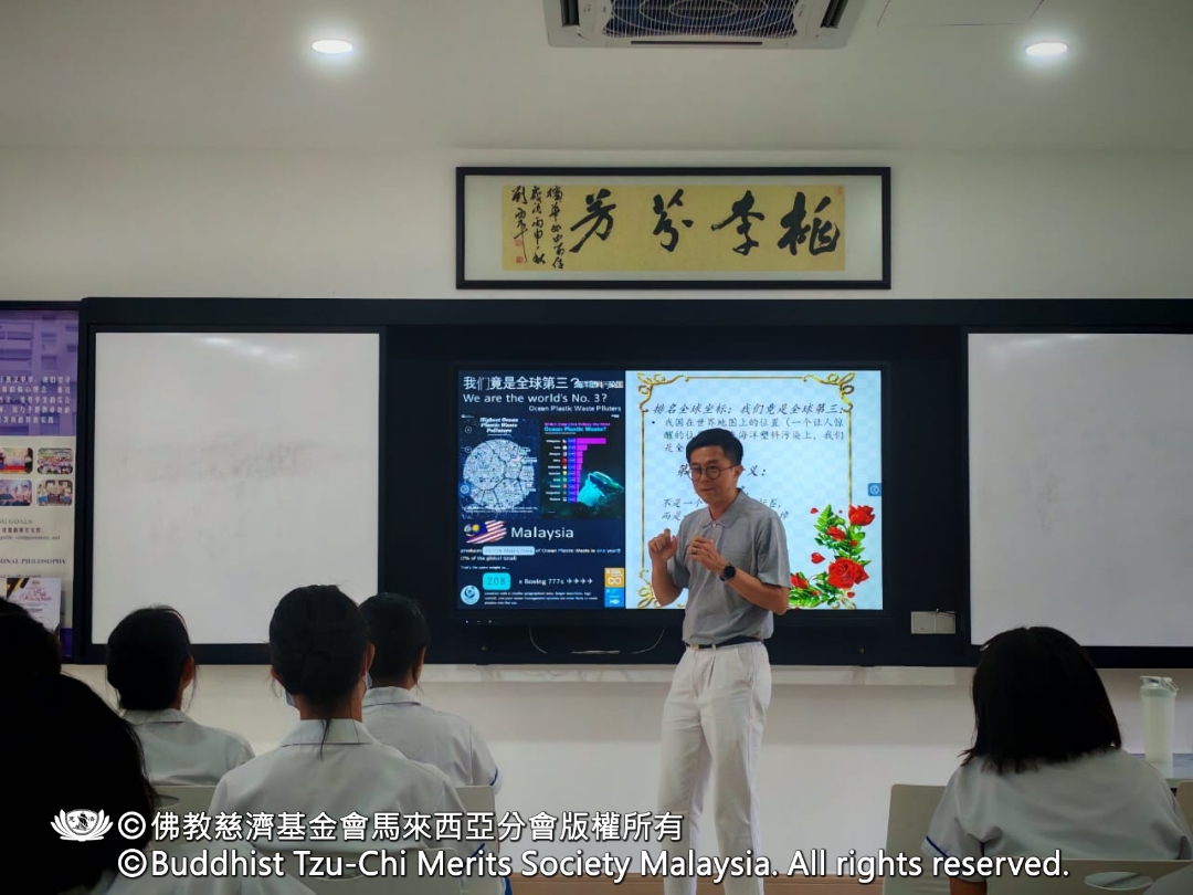 一场以“对地球有礼貌”为主题的环保宣导,在槟华独中展开。活动开始前,主持人庄玉心向校方表达感谢,并介绍来自槟城慈济人文学校的四位志工,为学生们带来一系列关于环保与气候议题的分享。在轻松的氛围中,初中一学生开启了一段认识地球现况与人类责任的学习之旅。
