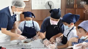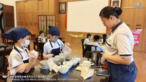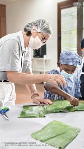 李承羽及张志仁都不约而同的认为,原来他们所熟悉的素香松拿来炒,会是那么好吃。原来香积饭除了是米饭,还可以做成糕点。帮忙准备香蕉叶的尤柔渝和郑博轩分享,看起来很普通的香蕉叶,处理起来一点都不简单。最后煎烤糕点时,戴璟喆因为不小心碰到热锅的边缘而烫伤。这令他想起爸爸、妈妈和奶奶每天不厌其烦的为家人煮饭,原来是很辛苦。看到人文团队的师姑们,用自己的休息时间来陪伴他们、教导他们,孩子们都心存感恩心。