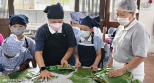 平日里最为熟悉的食材,其实承载着用心与理念。透过静思人文团队的引导,孩子们一步步了解食材的来源、制作的用心,以及背后所蕴含的清净、感恩与惜福之心。在烹煮净斯香烤蕉叶饭的过程中,香气四溢的不只是美味,更是一份对食物与生命的尊重。