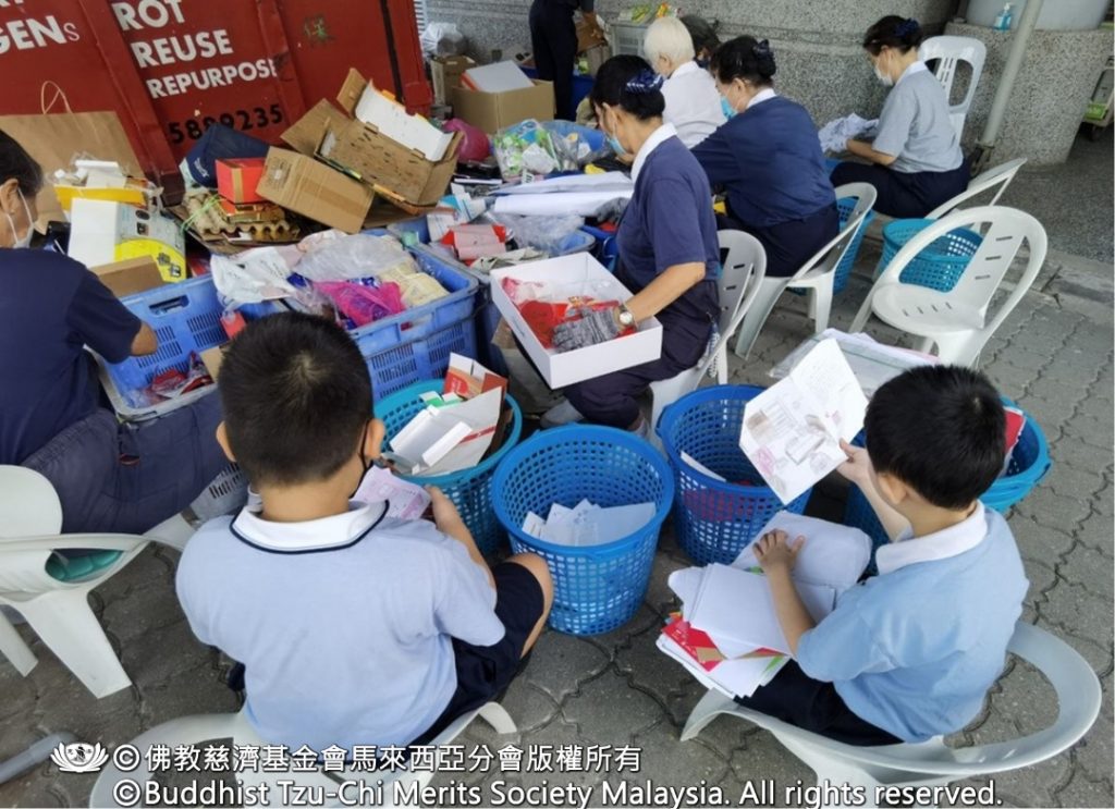 早上8点50分,虑珆老师带着星辰和宸端,将课室收集的环保物品送往环保站。抵达静思堂环保站时,看见许多师姑们正忙碌地进行资源分类。孩子们向师姑们礼貌请安后,师姑们也热情邀请他们一起参与志工服务。老师顺势让孩子们体验当一回“五分钟的小小志工”。