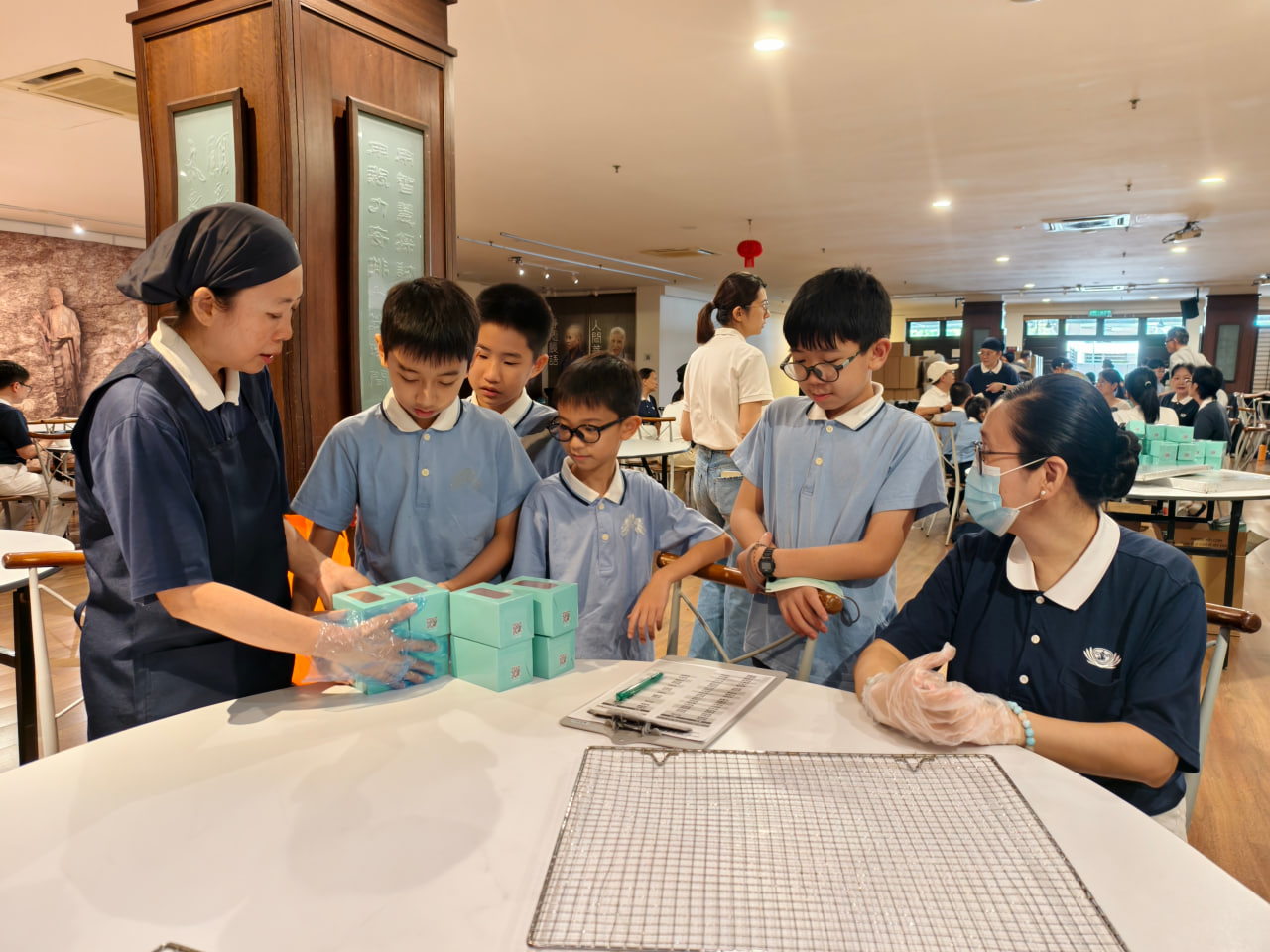 活動接近尾聲,親子們前往齋堂享用午餐。午餐後,每一位親子都領取了4盒壽桃及竹筒,希望大家能將活動中的愛與善意傳遞出去,鼓勵身邊更多人參與到510浴佛典禮中,併為慈濟國際靜思堂的建設貢獻自己的一份力量。