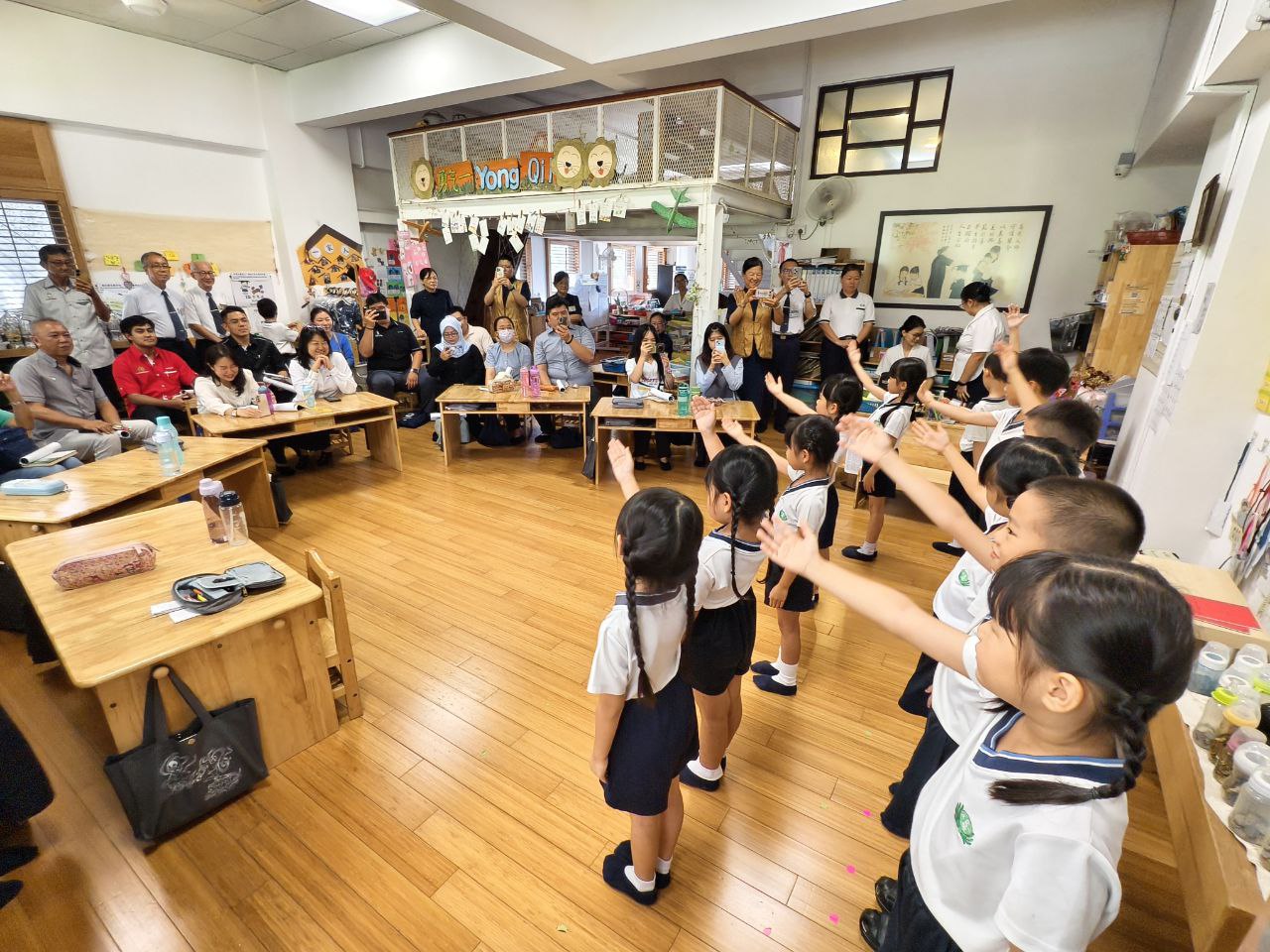 說明會後,與會嘉賓參觀幼兒園,親身感受慈濟教育的溫馨氛圍。五歲毅力班正在人文課室上花道課,六歲勇氣1班則表演手語、贈送靜思語小卡,並為訪客進行「愛的伊比丫丫」捶背服務。在大地之母前合照後,孩子們還為來賓夾上自製的花花夾子,一天的活動在孩子們溫馨的「Selamat tinggal」歌聲中圓滿結束。
