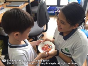 新山慈济幼儿园信心一班的幼儿学习与参与制作净斯莓果月饼,完成后开心的品尝自制的月饼,并保留一粒月饼带 [...]